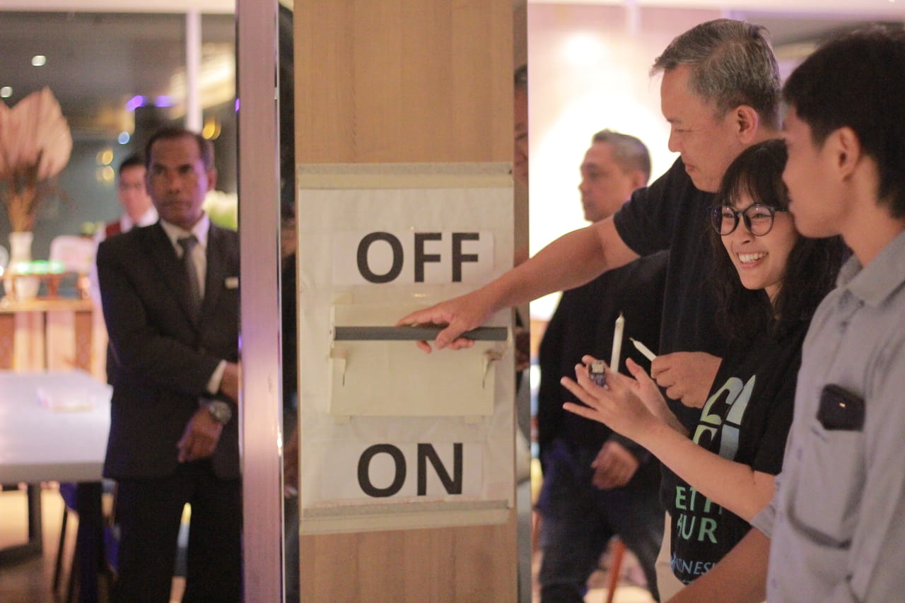 COUNTDOWN pemadaman lampu pada acara Switch Off bersama Earth Hour Surabaya di Oakwood Hotel & Residence Surabaya pada Sabtu malam, 28 Maret 2026. -Rosyidah Ariyati-Harian Disway