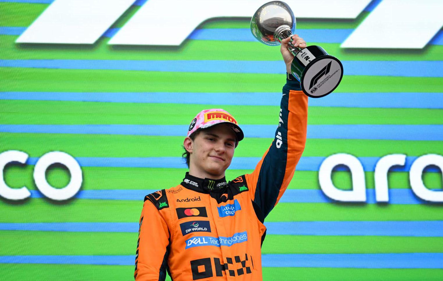Oscar Piastri, saat mengangkat trofi podium kedua GP Jepang 2026, pada 29 Maret 2026--Twitter Formula 1 @F1