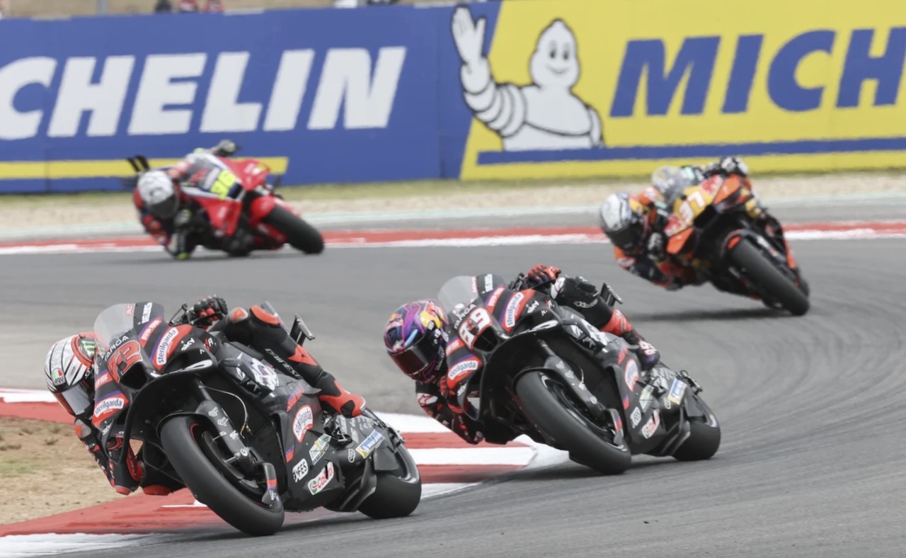 Pada lap ke-14, Acosta kembali melakukan kesalahan di tikungan pertama. Momen tersebut dimanfaatkan Jorge Martin untuk merebut posisi kedua, sekaligus mengunci peluang finis 1-2 bagi Aprilia.