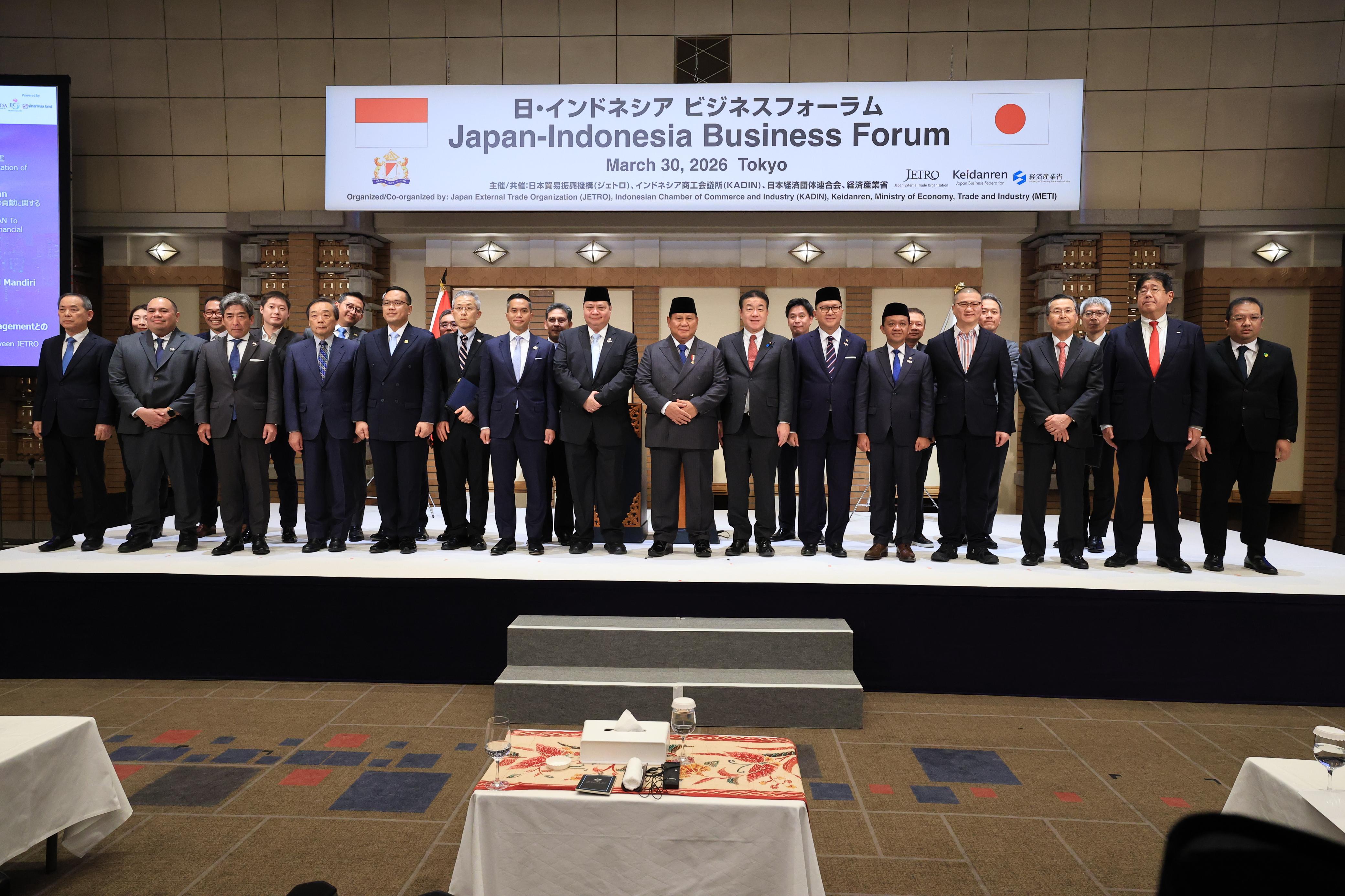 Presiden RI Prabowo Subianto bersama dengan para pelaku investasi Jepang dalam forum Indonesia-Japan Business Forum di Tokyo, Senin, 30 Maret 2026-Bakom RI-Bakom RI