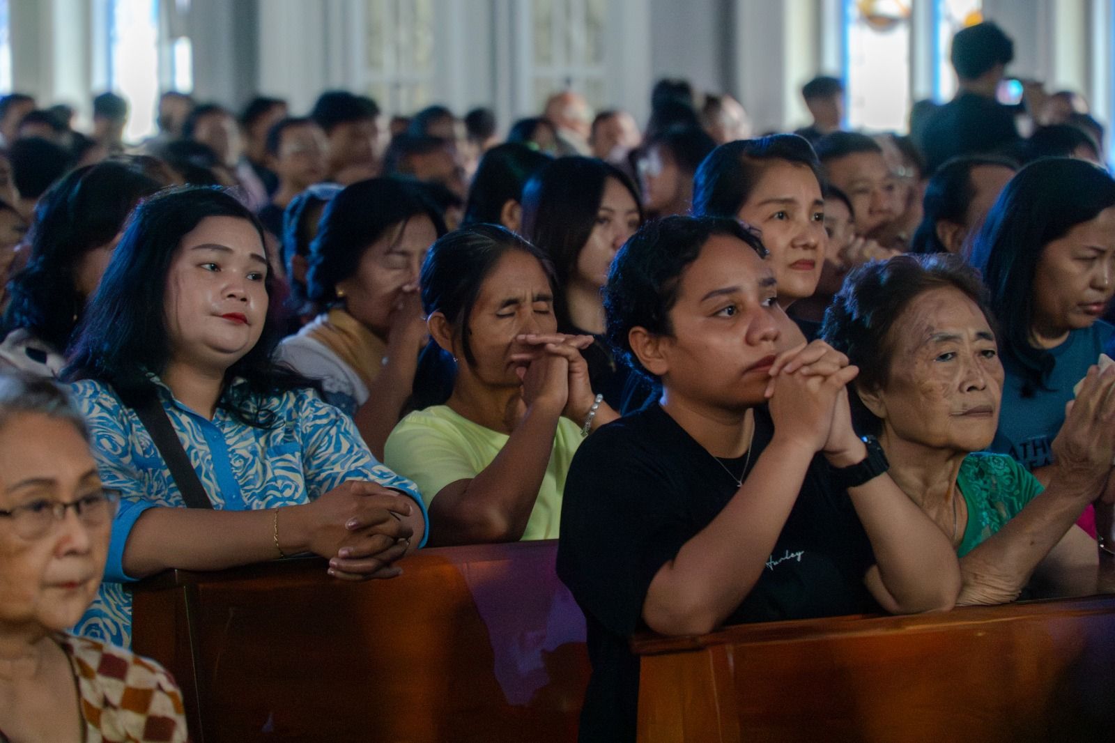 UMAT mengikuti Visualisasi Jalan Salib (VJS) dengan khidmat. Beberapa di antaranya larut dalam emosi, hingga menitikkan air mata. -Najwa Rana Iswari-Harian Disway