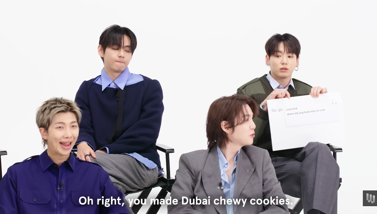 Kemudian, Suga dan Jin membongkar bahwa Jungkook baru saja memasak Dubai chewy cookies, kue marshmallow isi kunafa yang sedang viral. Jumlahnya tidak tanggung-tanggung, yakni 200 buah! Ia membagi-bagikannya kepada para staf saat syuting.