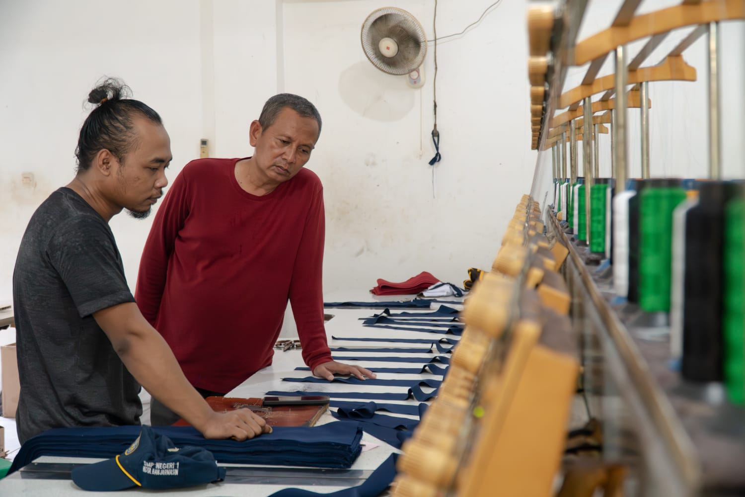 UMKM topi milik Ali Murtadho (berbaju merah) yang telah eksis sejak dekade '70an. Selain krisis penjahit, saat ini mereka membutuhkan ekspansi ke pasar digital.-Najwa Rana Iswari-Harian Disway