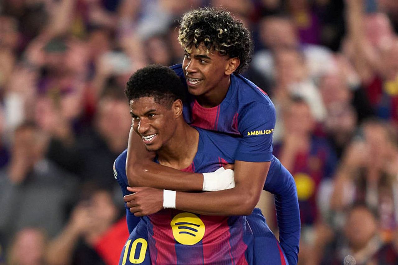 Selebrasi Marcus Rashford usai buat Barcelona unggul 4-1 atas Espanyol dalam laga La Liga 2025/2026 jornada ke-31, Minggu 12 April 2026-Pedro Salado-Getty Images