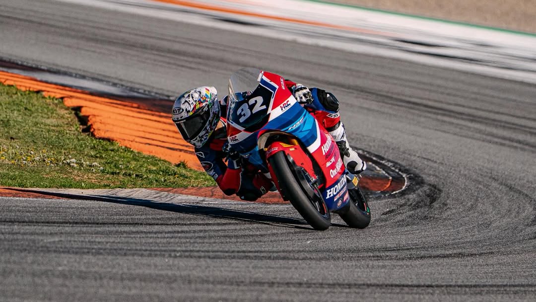Kiandra Ramadhipa (32), saat melakoni sesi tes kelas Moto3 JuniorGP dengan motor Honda NSF 250RR di sirkuit Ricardo Tormo, Valencia, pada 5 April 2026--Twitter Scherazade @ScherazadeMS