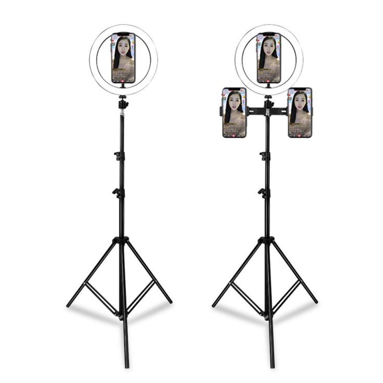 Ring light itu jadi pilihan paling worth it. Karena sudah termasuk tripod tinggi dan holder HP. Cocok untuk Anda yang ingin setup praktis tanpa ribet. Ukuran 26 cm sudah cukup untuk lighting wajah agar terlihat glowing dan estetik.
