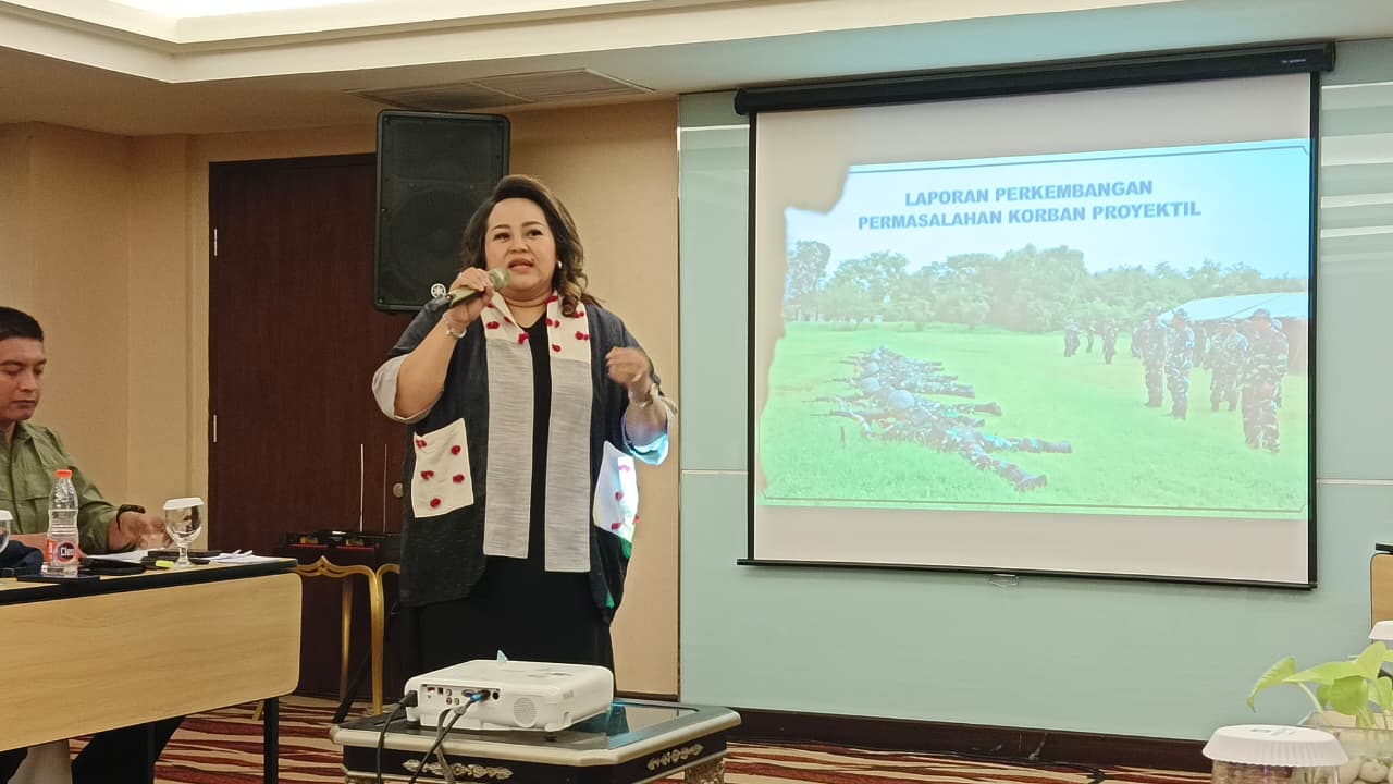 Kuasa Hukum Danmenbanpur 2 Kolonel Marinir Rizal, Nina Yanti, saat menerangkan hukum di Meeting Marinir, Minggu, 12 April 2026.-Agustinus Fransisco-Harian Disway