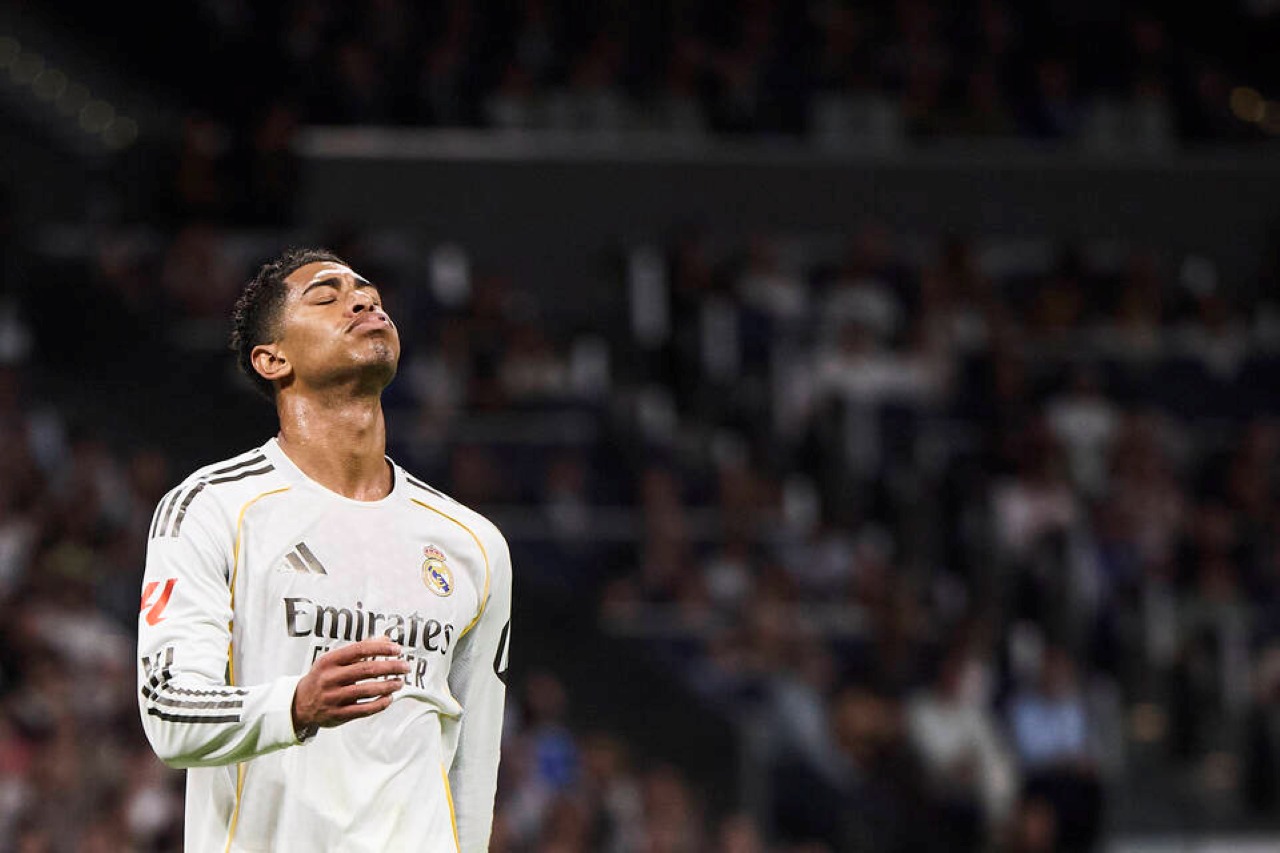 Reaksi Jude Bellingham (kanan) usai Thomas Lemar samakan kedudukan bagi Girona lawan Real Madrid dalam laga lanjutan La Liga 2025/2026 jornada ke-31, Sabtu 11 April 2026--IMAGO