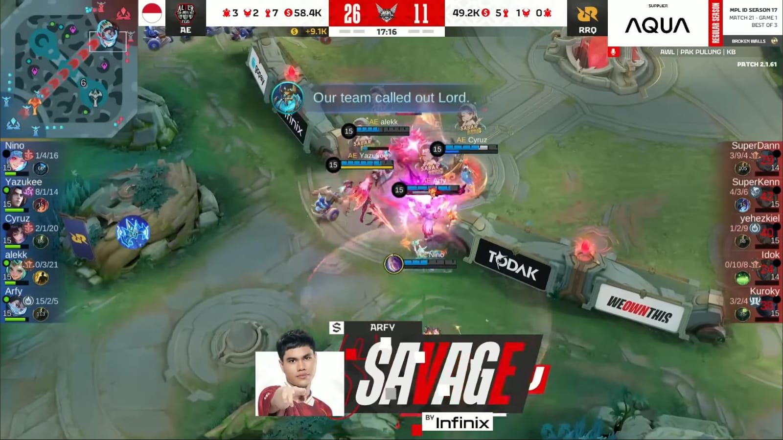 Momen savage AE Arfy saat laga melawan RRQ Hoshi -Kanal YouTube MPL Indonesia-YouTube