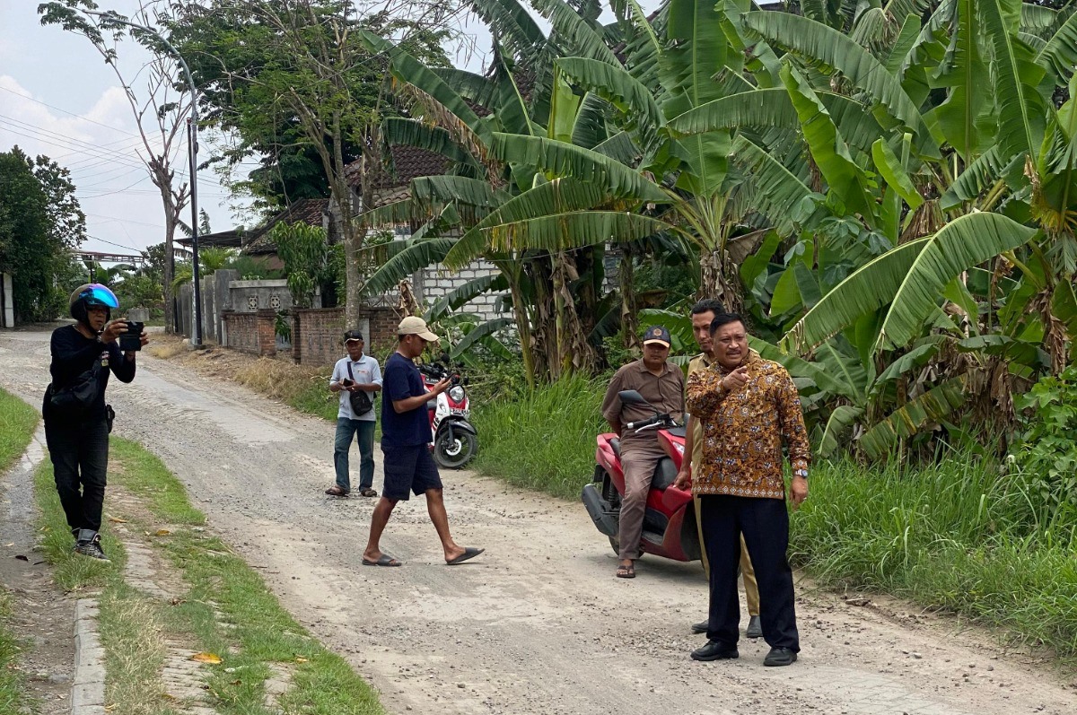 WAKIL KETUA DPRD Gresik Mujid Riduan meninjai infrastruktur jalan di Dusun Kedondong, Desa Ngampel, Kecamatan Balongpanggang,Gresik. Kecamatan itu termasuk di dalam empat wilayah fokus pembangunan infrastruktur.-Dok. DPRD Gresik-