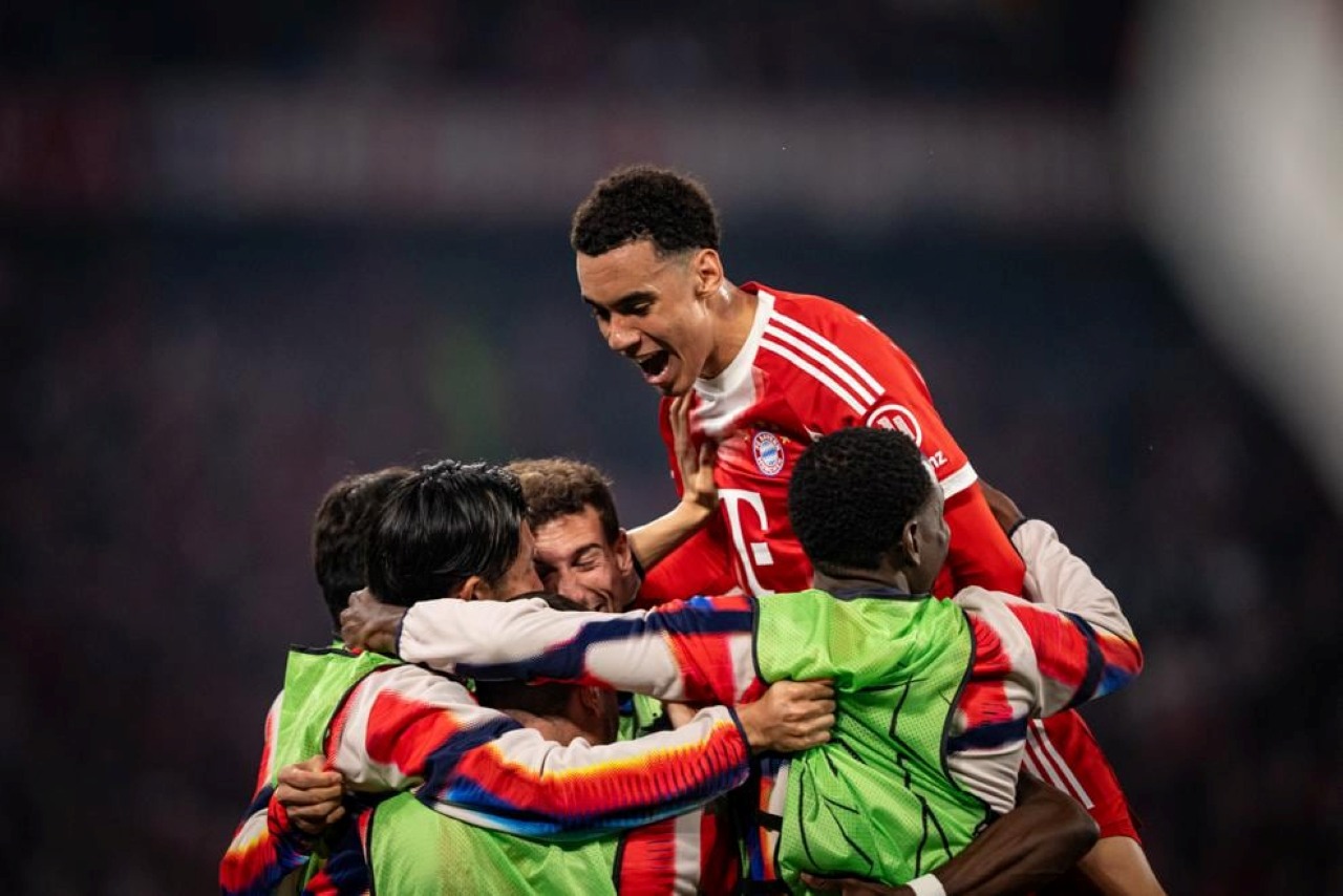 Selebrasi pemain Bayern usai Luis Diaz cetak gol dan buat skor menjadi 3-3 (agg 5-4) lawan Real Madrid, leg kedua perempat final Liga Champions 2025/2026, Kamis 16 April 2026--Uefa.com