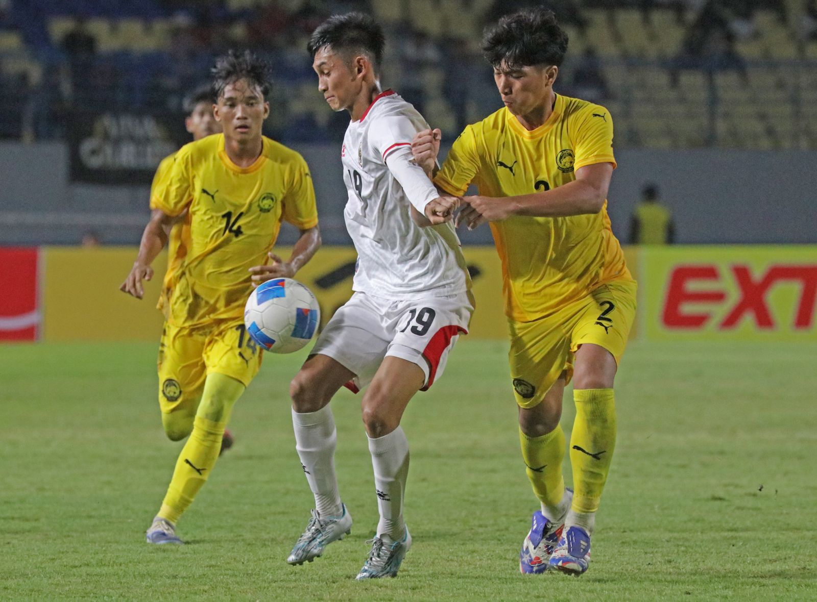 Peluang Keanu Senjaya (tengah) ketika Timnas Indonesia U-17 menghadapi Malaysia di AFF, Kamis, 16 April 2026.-Boy Slamet-Harian Disway
