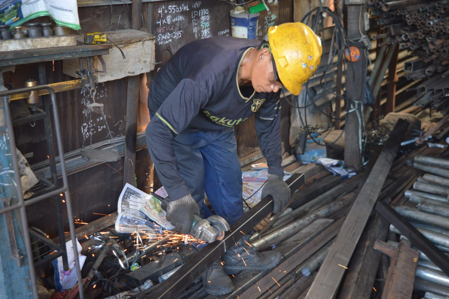 Aktivitas produksi usaha logam di Kampung Logam Ngingas, Waru, Sidoarjo.-Raden Khansa Pandya Amorta-Harian Disway