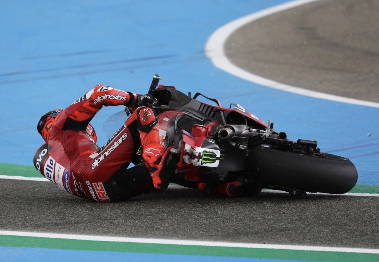 MotoGP Spanyol 2026: Marc Marquez juara sprint race setelah crash. Foto: Marquez jatuh di lap ke-8. -Motorsport-