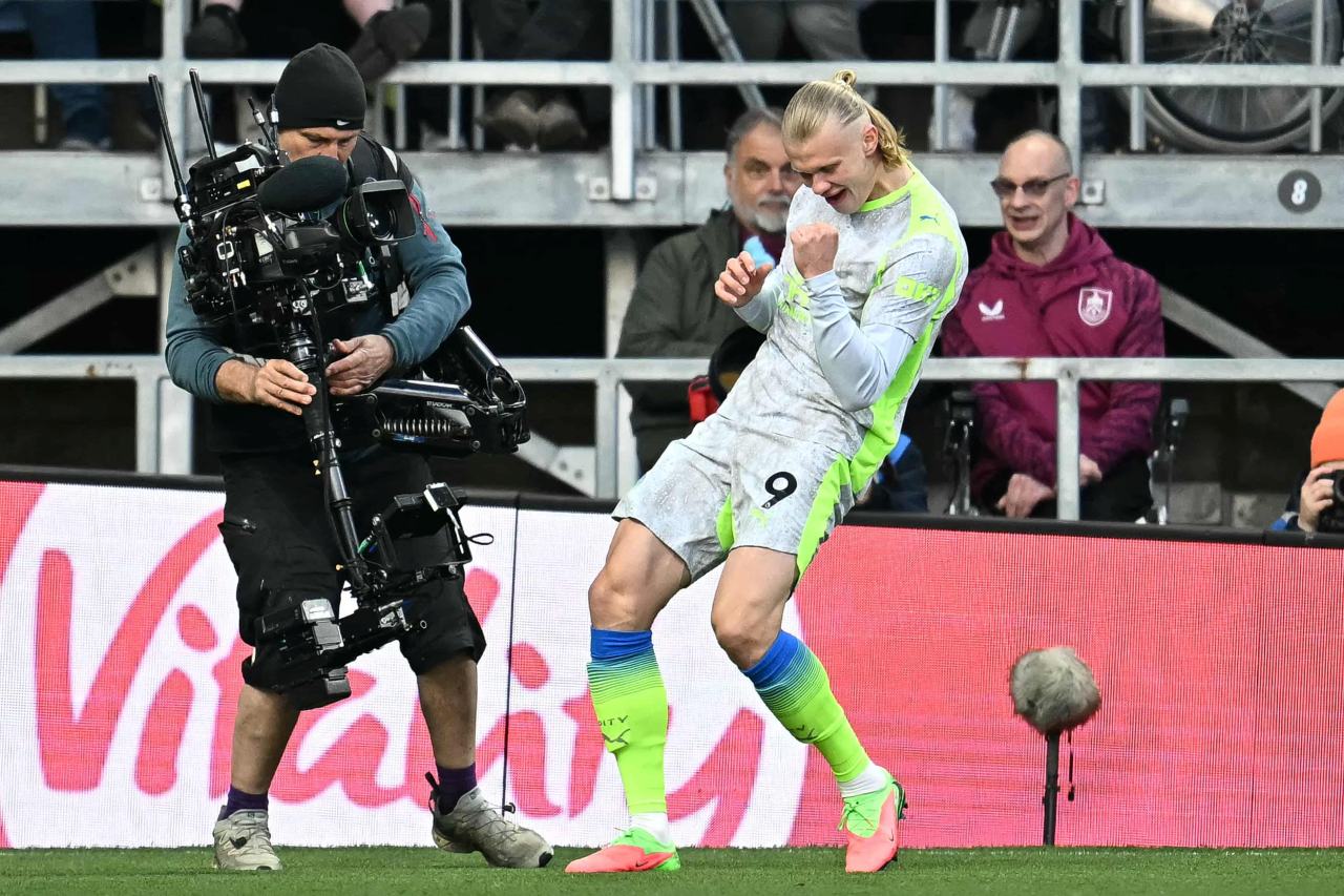 Selebrasi Erling Haaland usai buka keunggulan bagi Man City atas Burnley dalam laga Premier League 2025/2026 matchday ke-34, Kamis 23 April 2026-Paul Ellis-Getty Images