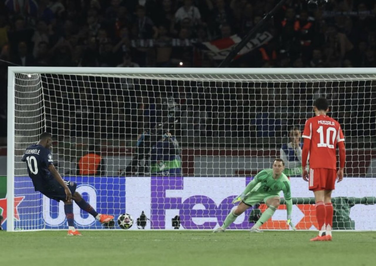 Momen penyerang PSG, Ousmane Dembele, ketika mengeksekusi penalti dalam laga kontra Bayern Munchen. Rabu, 29 April 2026.--Uefa.com