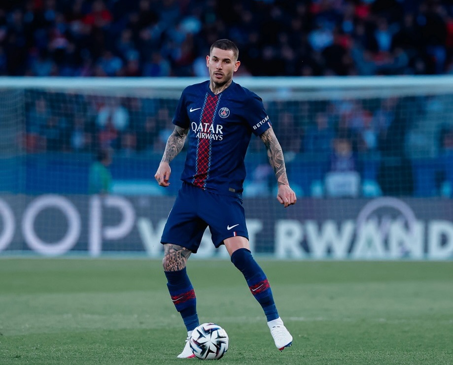 Aksi bek PSG, Lucas Hernandez, ketika melakukan build-up serangan dalam laga kontra Nantes. Kamis, 23 April 2026.--Instagram @Psg